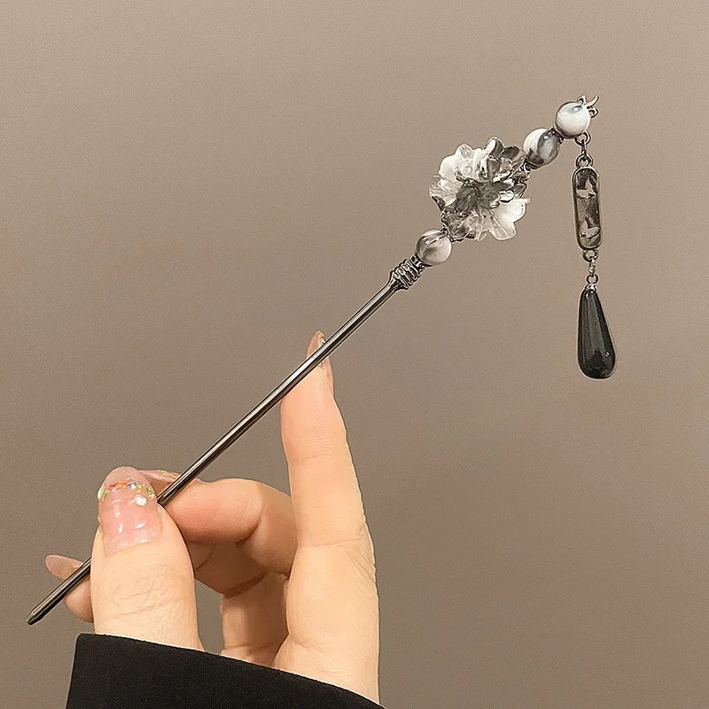 Where delicate flora meets the art of the ink wash. This hairpin is more than an accessory; it's a vessel of quiet elegance, designed to carry a touch of serene, cross-cultural beauty with you throughout the day.