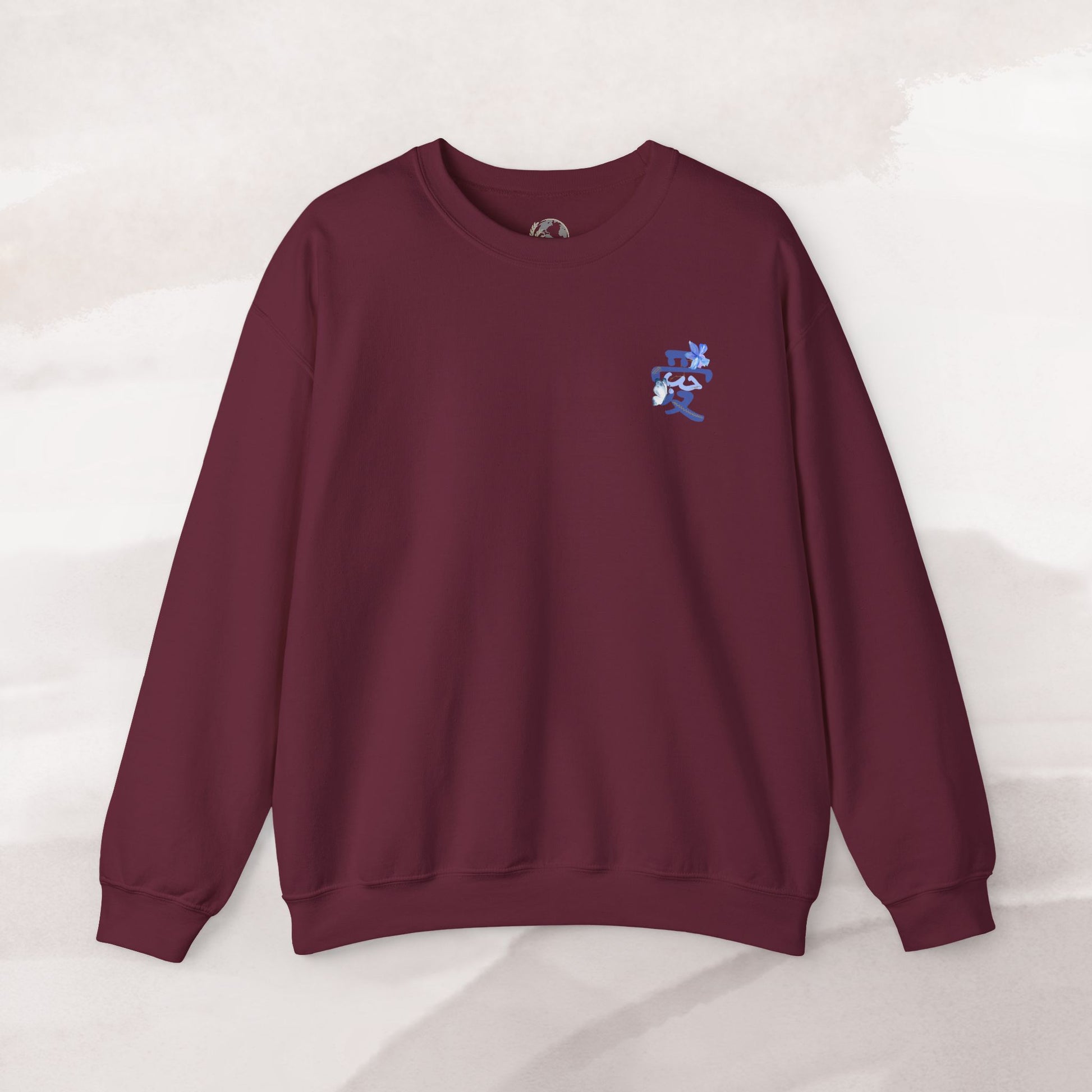 Wrap yourself in a wearable sanctuary. The "Love's Resilient Vessel" sweatshirt is designed for quiet comfort and profound meaning. It features a subtle embroidered kanji over the heart, paired with a beautiful, watercolor-style back print—a layered, artistic declaration of healing and inner strength.
