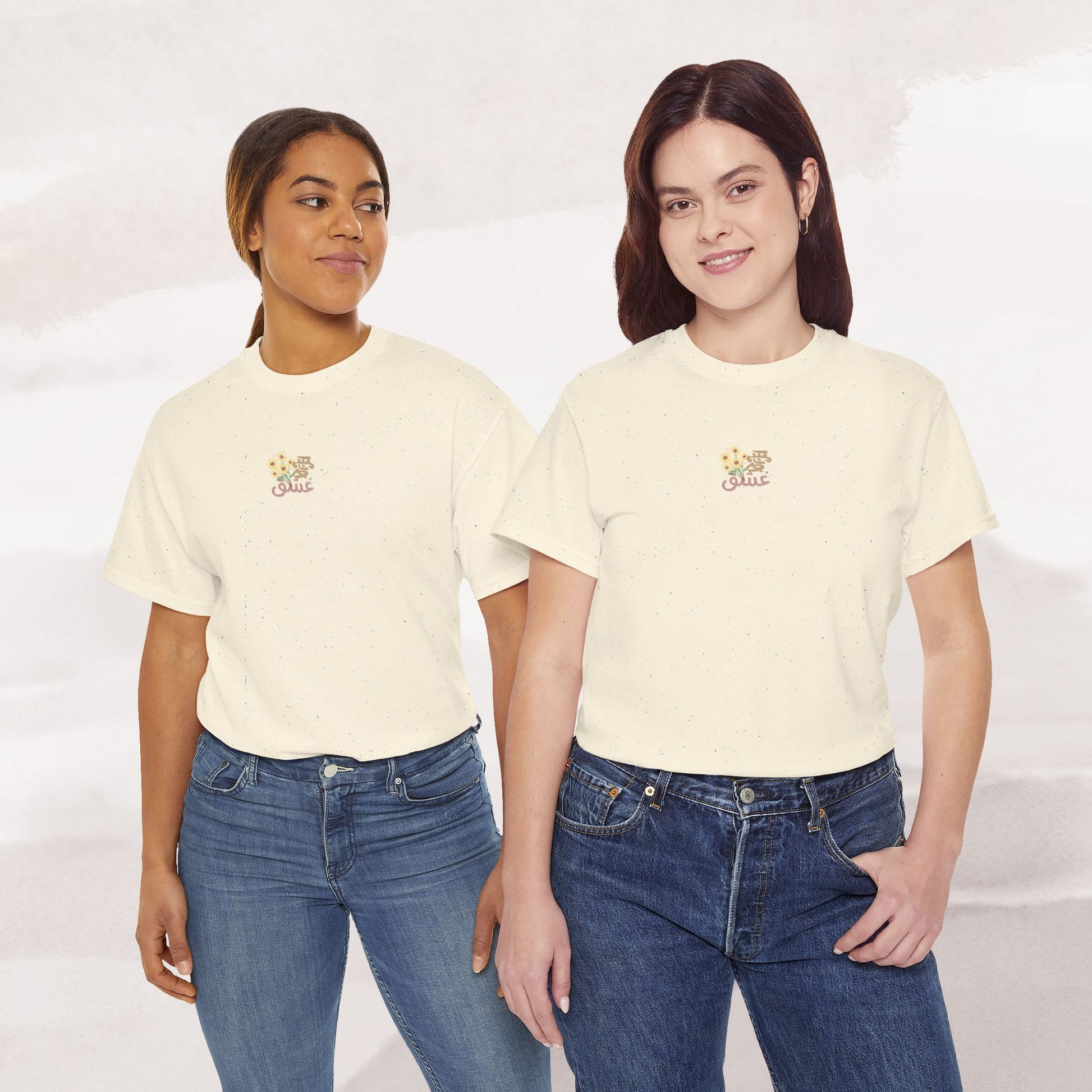 The front features a beautiful, original design that harmoniously blends the Chinese character 「愛」 (Oi3) with the profound Arabic word "عشق" (Ishq).